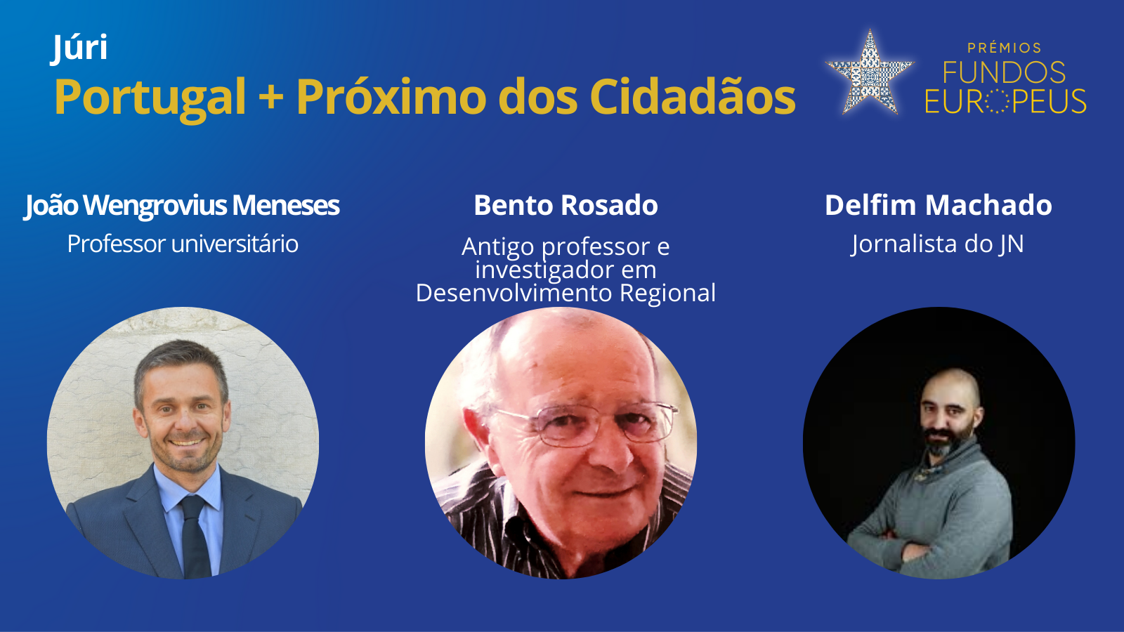 Cada categoria do prémio terá um júri composto por três elementos de renome e elevado reconhecimento e mérito nas áreas relacionadas com as mesmas, entre os quais um jornalista que acompanhe o tema dos fundos europeus e/ou dos temas relacionados com as categorias.